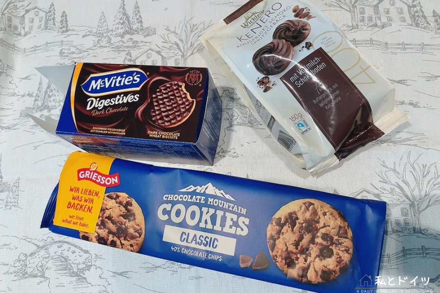 ドイツで今!私の気に入っているもの・いろいろをここで紹介します。2024年5月ご紹介するのは、私と娘が今!ハマっているチョコレートクッキー3選
